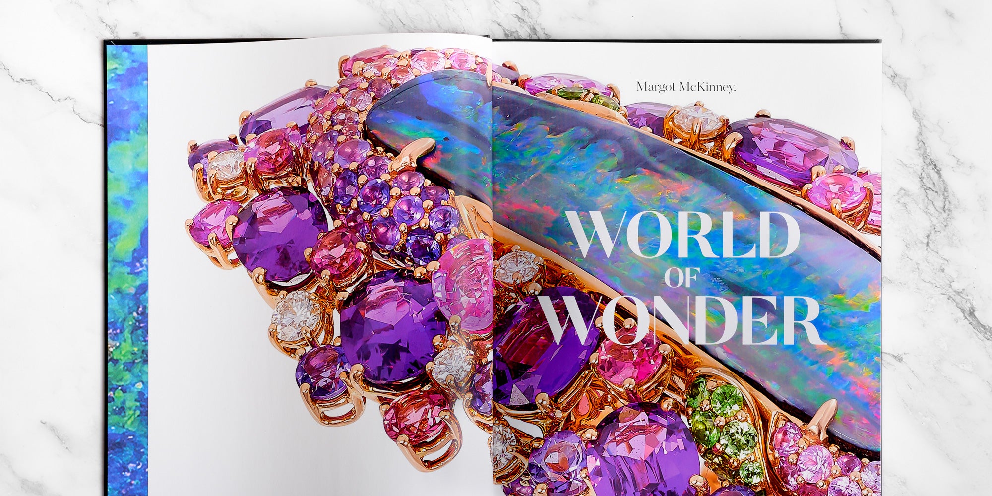 Showcasing Margot McKinneyâs creations alongside five generations of history and storytelling, âWorld of Wonderâ is a 151-page hardcover treasure trove of never-before-seen intimate family archives as well as larger than life views of opulent opals, lustrous pearls, and rare exotic gems like the intensely blue tanzanite, lilac amethyst, and pink tourmaline.